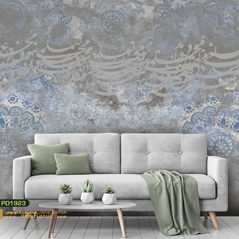 پوستر دیواری خطاطی بکگراند گل آبی پتینه کالیگرافی-کدPD1923